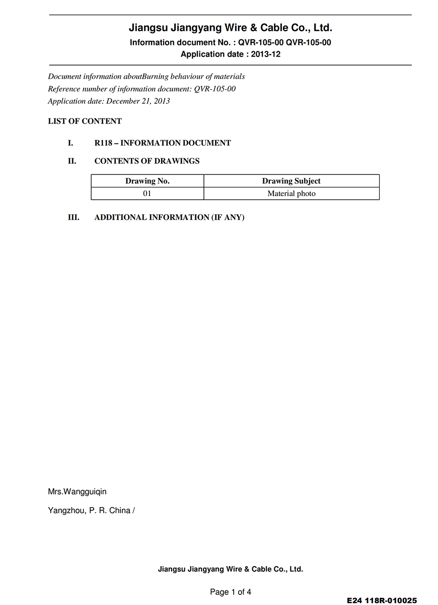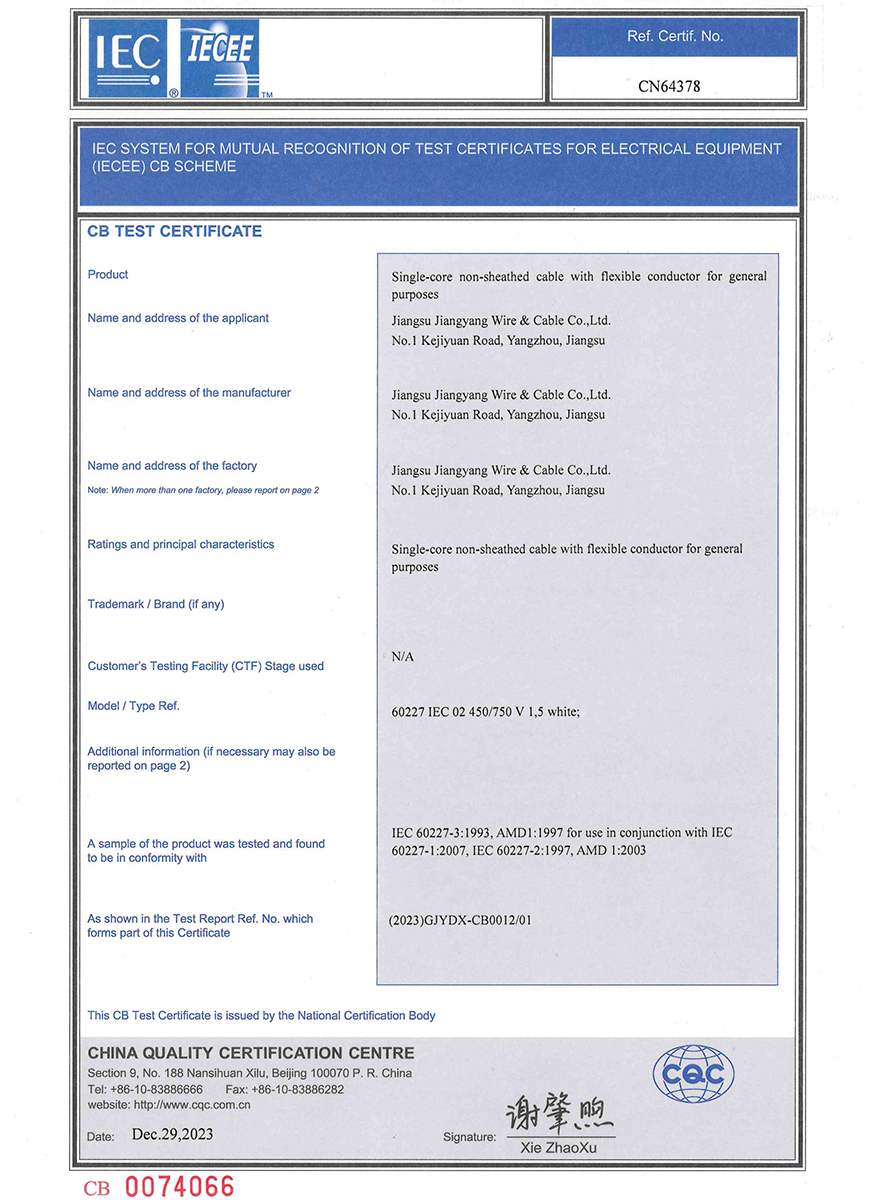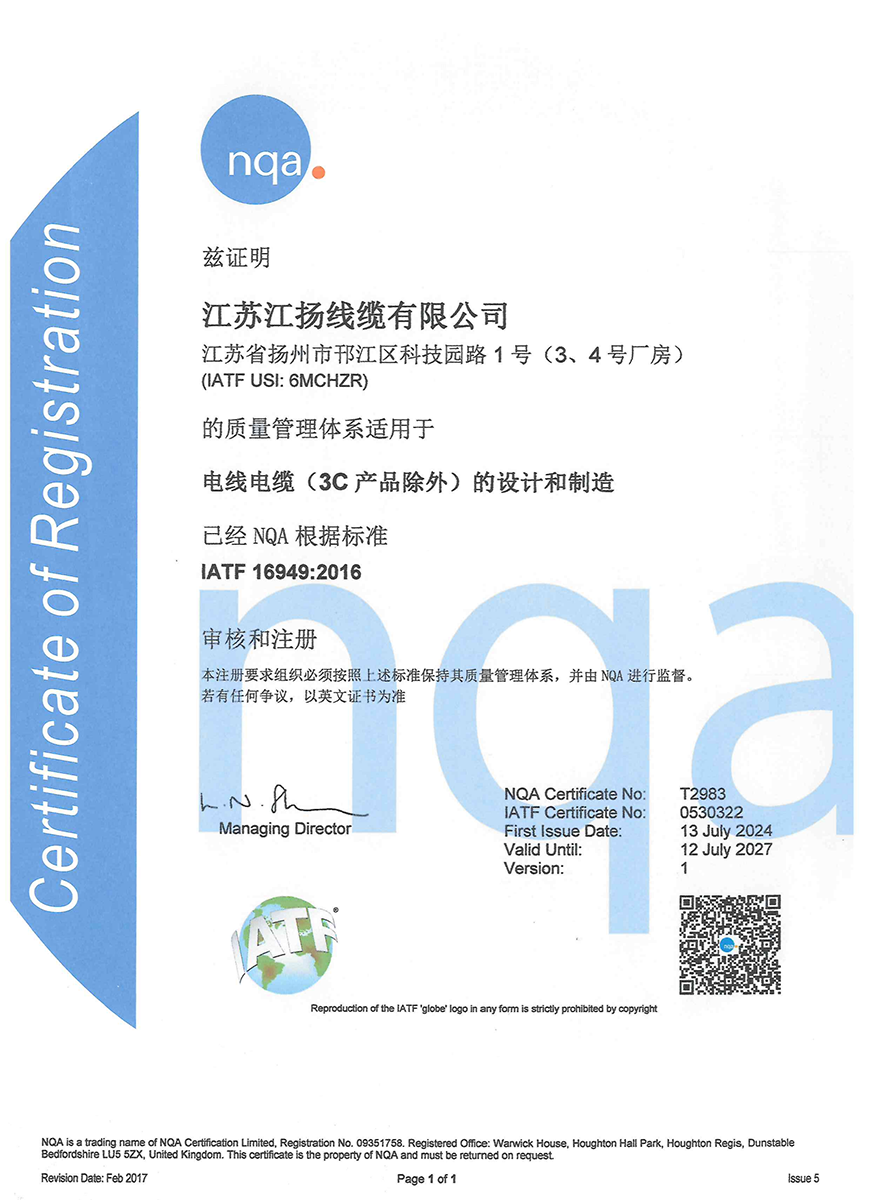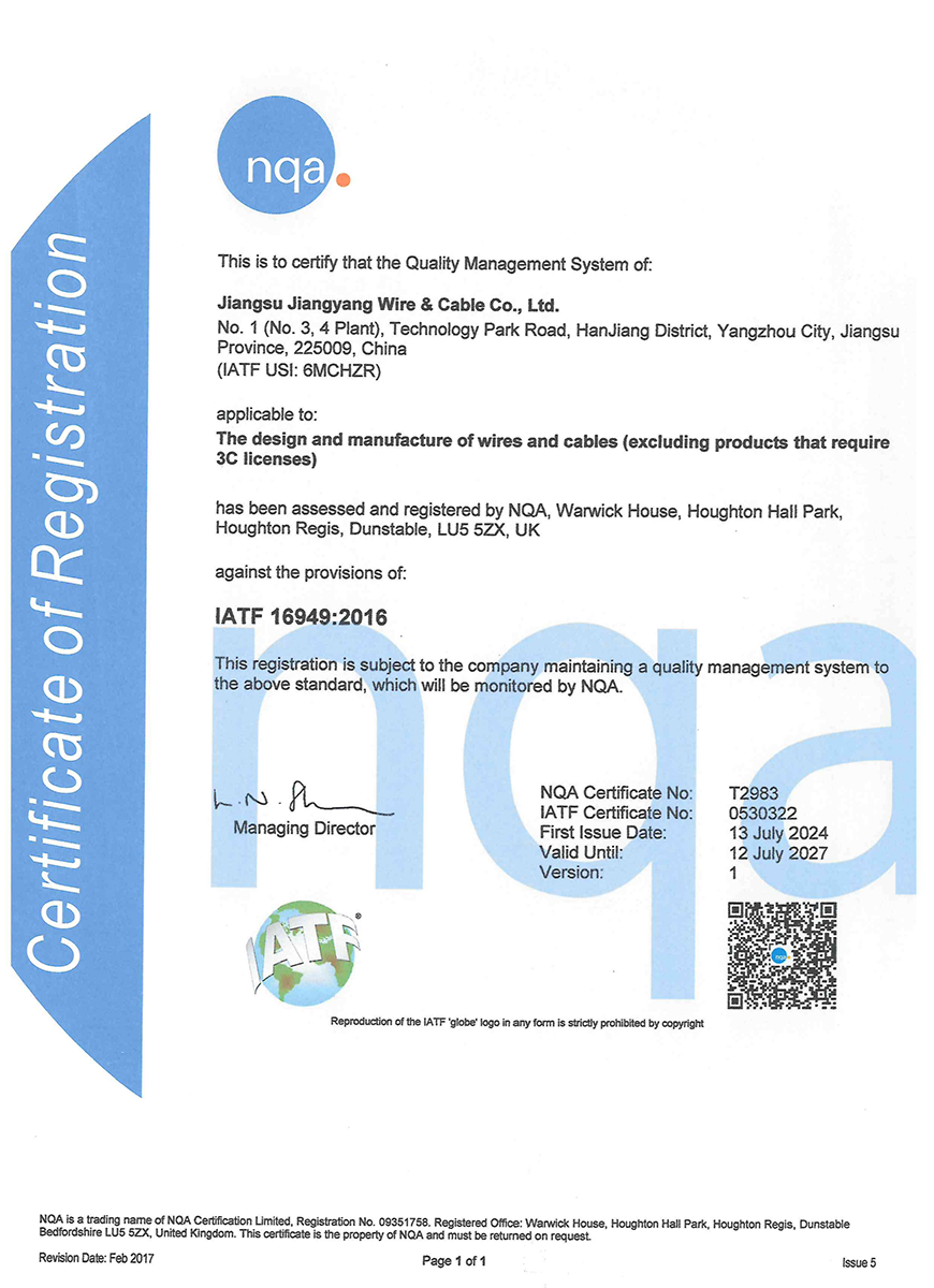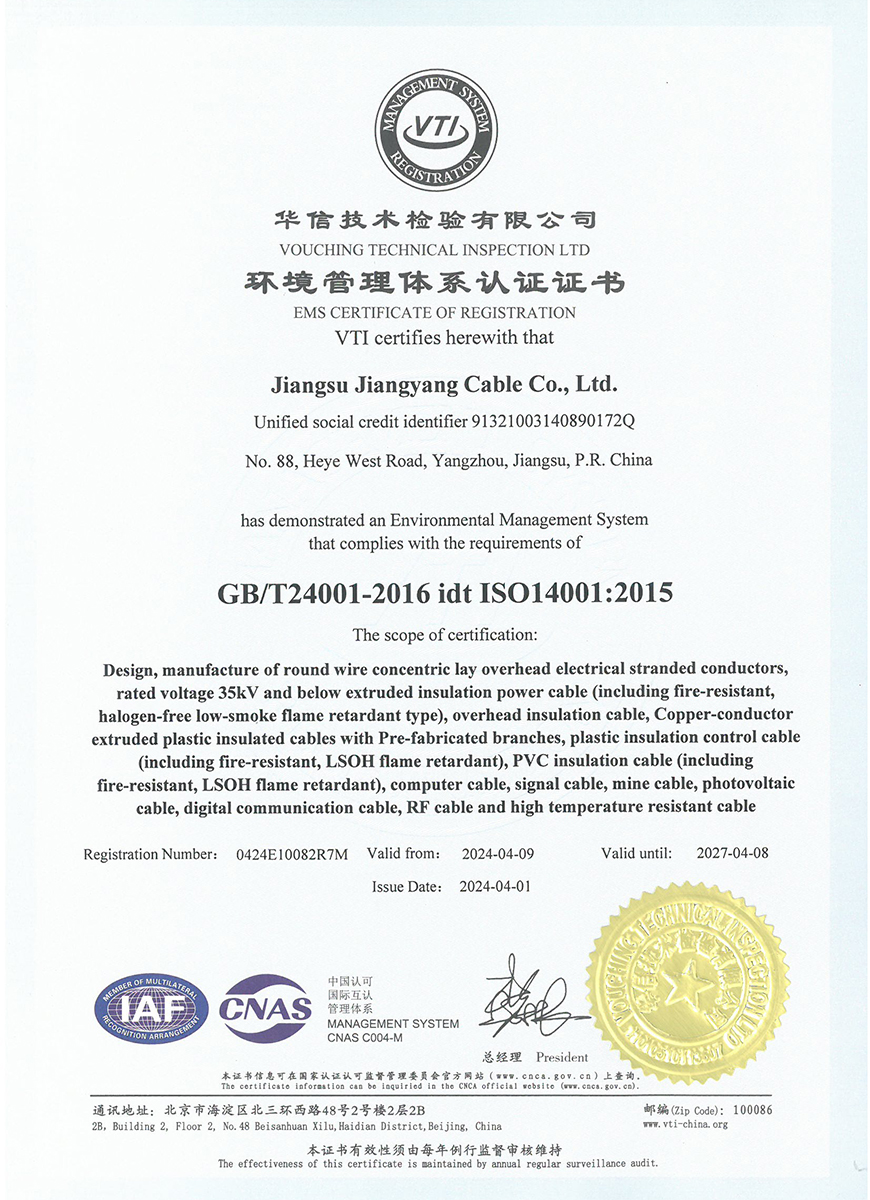 Группа Цзянъян также ценит честность, репутацию и устойчивое развитие, что позволяет нам сохранять конкурентоспособность в отрасли проводов и кабелей и выполнять корпоративную социальную ответственность.