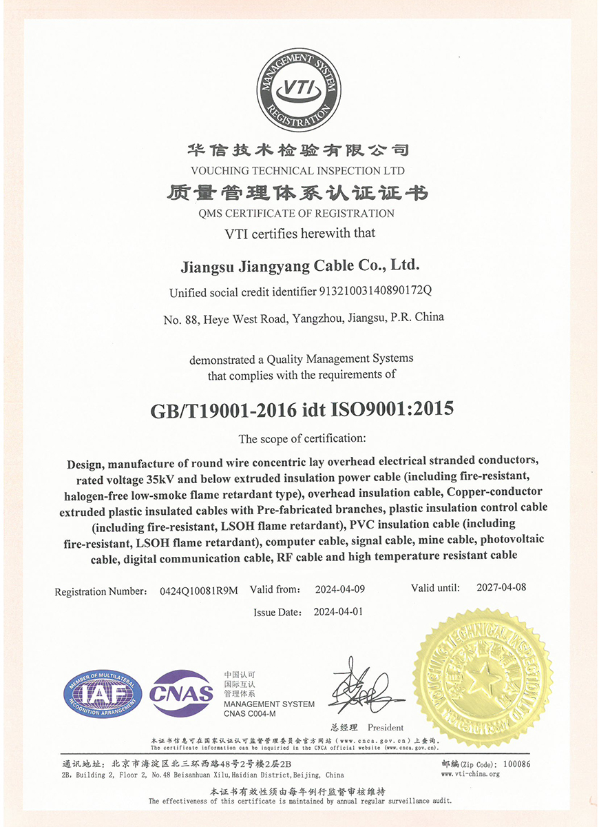 Для обеспечения надежности кабелей в соответствии с международными передовыми стандартами, качество нашей продукции гарантируется строгим контролем на каждом этапе производства. Все виды кабельной продукции прошли соответствующие проверки качества и получили сертификаты как на внутреннем, так и на международном рынках. Уровень качества и надежности наших кабелей гарантируется до их доставки нашим ценным клиентам.