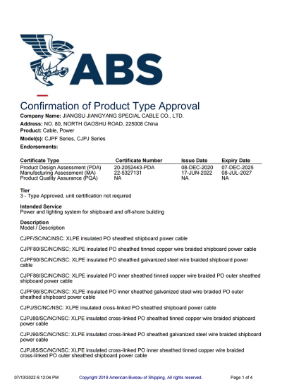 С сильной исследовательской и опытно-конструкторской базой, современным управленческим аппаратом и постоянным внедрением качественных проектов, группа Jiangyang получила ряд международных сертификатов систем управления качеством и аккредитацию от CNAS (Национальная служба аккредитации Китая по оценке соответствия).